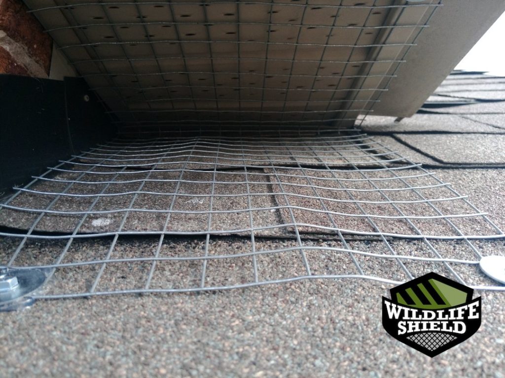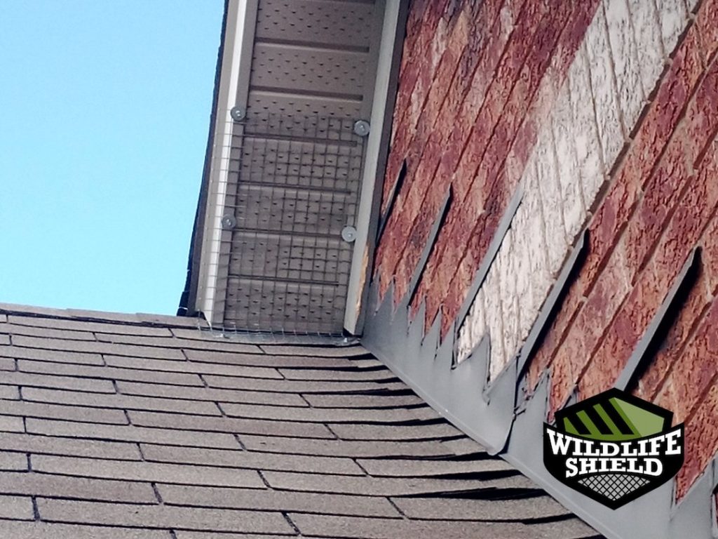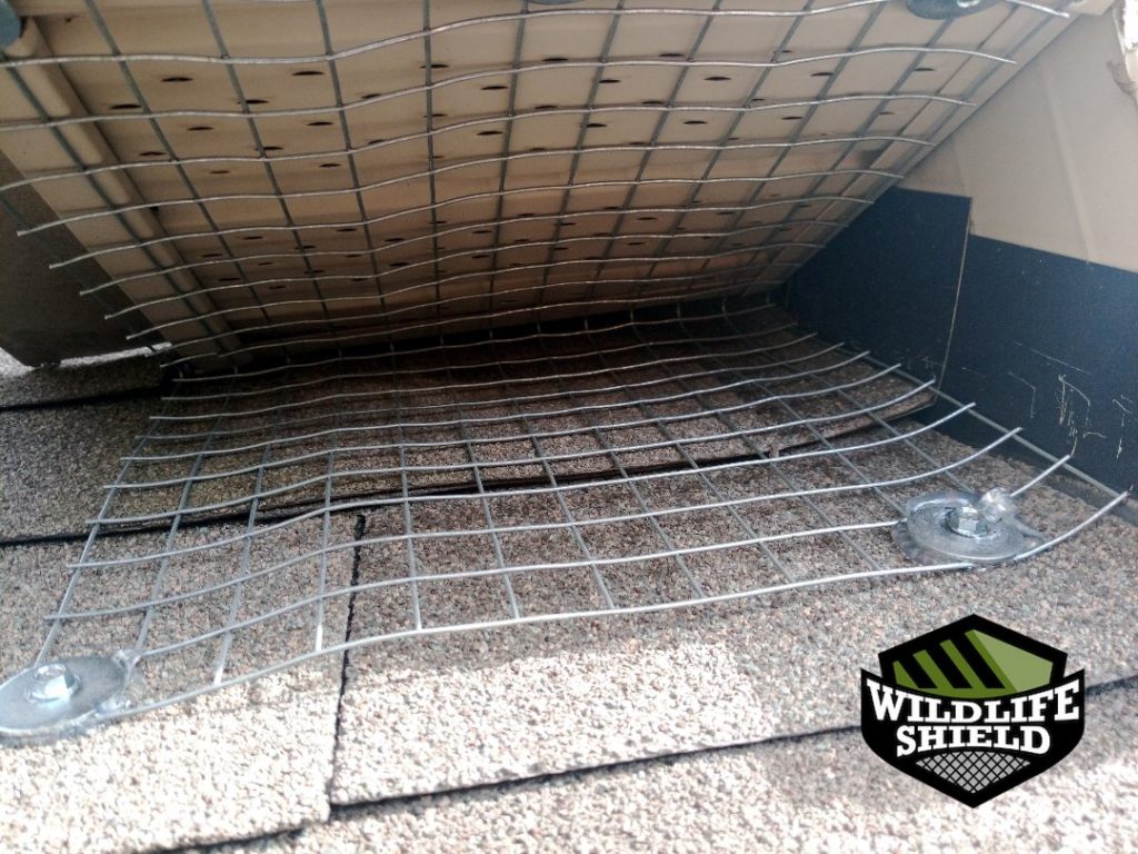 On the follow-up visit, after confirming no further activity, the one-way doors were removed. The roof–soffit intersection was permanently sealed with galvanized steel mesh, secured flush to the structure to prevent future access.